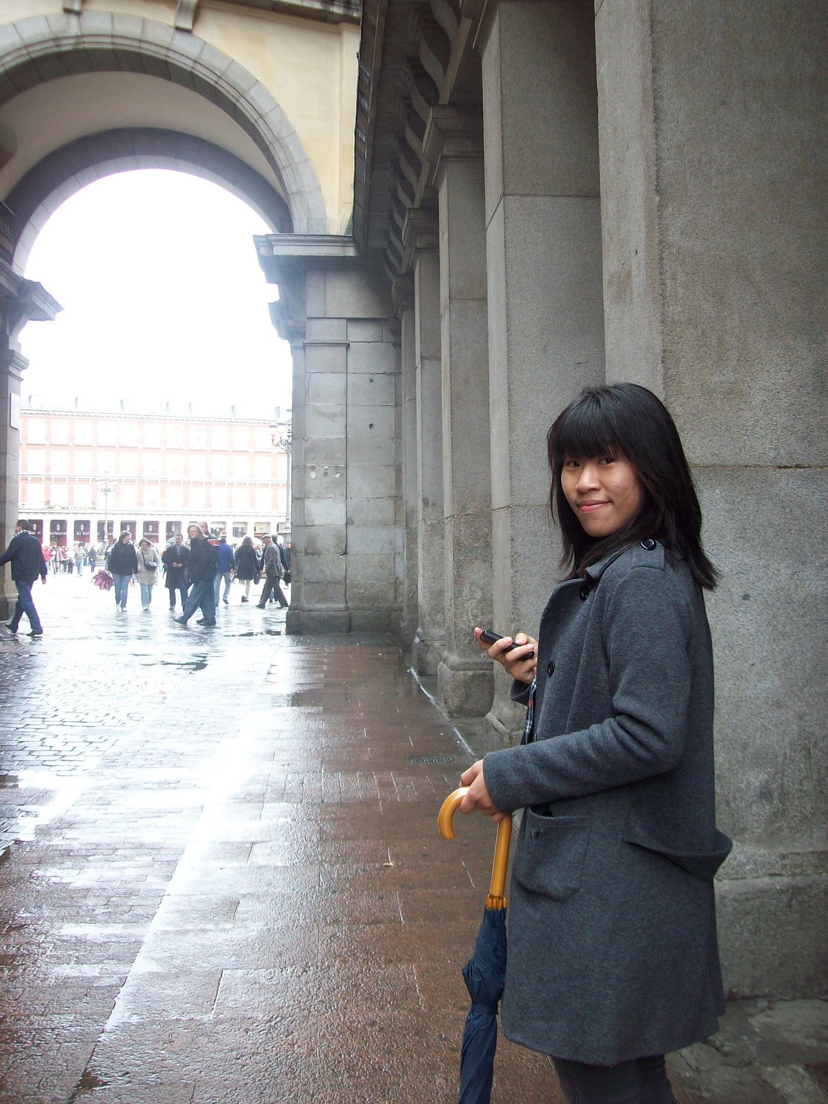 What is there to do during a rainy day in Madrid but to go out of the house with our umbrellas and wait for the bus? We take a long walk downtown and arrive at La Latina, where we have some beers. Now that we’ve had so many sunny days these past 2 months, it’s nice to see the city under the rain and clouds.