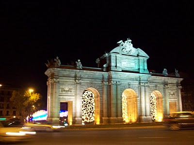While waiting for the bus, I caught some shots of the Puerta de Alcalá, which they’ve strung with lights.