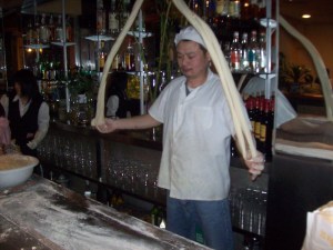 To continue the festivities we went to a Chinese restaurant in Bilbao that specialized in noodles. The guy at the bar puts on a show of making the noodles.