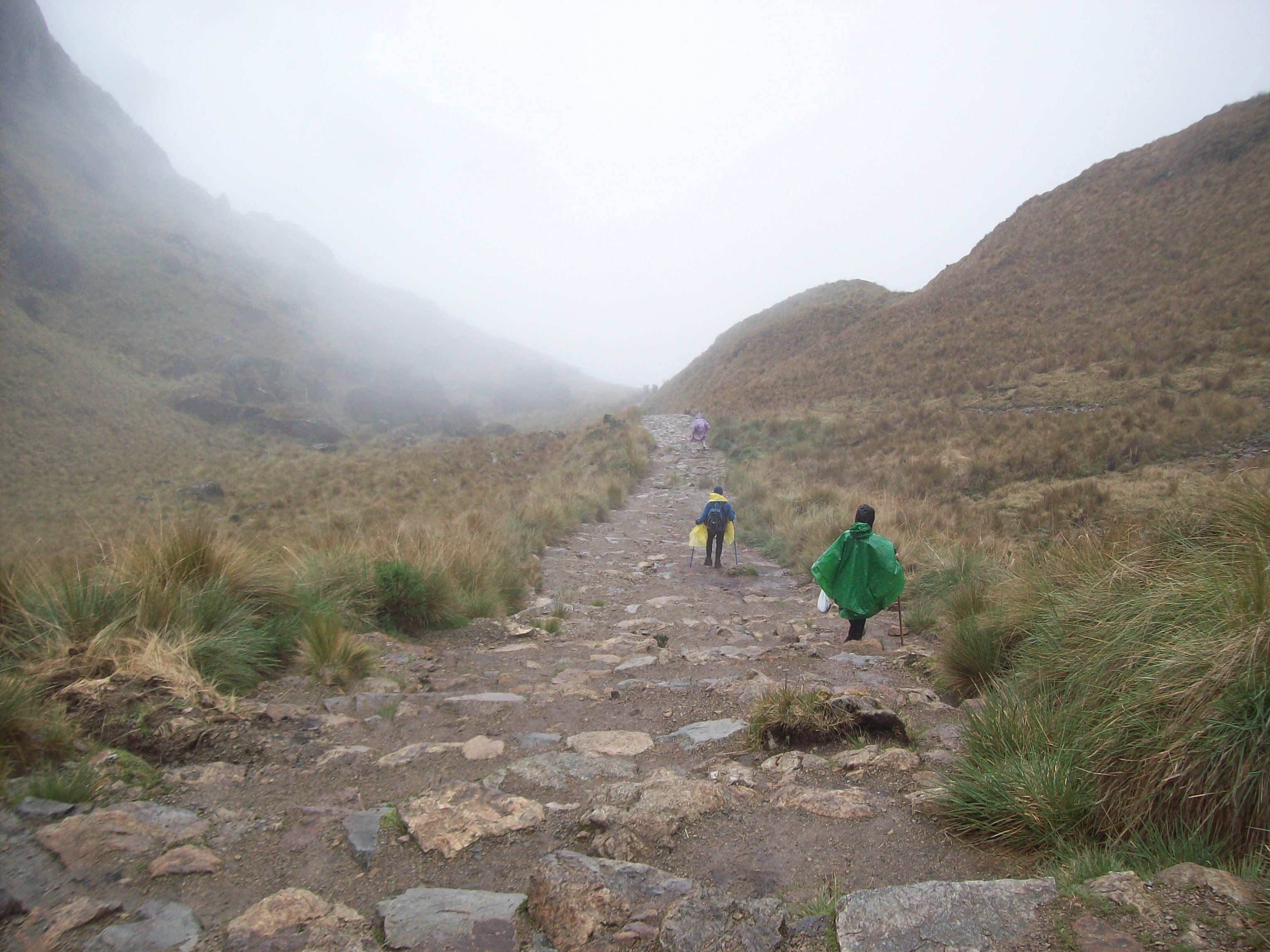 After lots of stopping and starting, sighs, extreme pain, encouragement, dizziness, near faint spells, tears, and curses, I somehow made it up to the very top of Dead Woman’s Pass (very apt name indeed), at 4300 meters. I couldn’t believe (and still can’t believe) that I’d climbed a fucking mountain. What seemed impossible was not behind me. I looked back at the misty valley and just felt relief. Next came the descent down treacherous stone steps, made even more dangerous by the rain that began to fall.