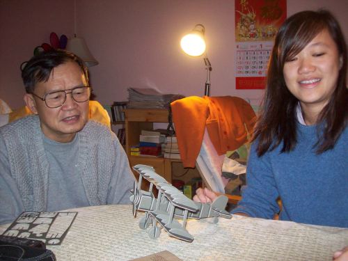 I bought my dad a cardboard airplane construction set for kicks and he set right to work, exactly the way I imagined he would — peering over his glasses with a disgruntled look of complete concentration, the same way he reads the newspaper, pores over maps, the way he used to help build my science projects: