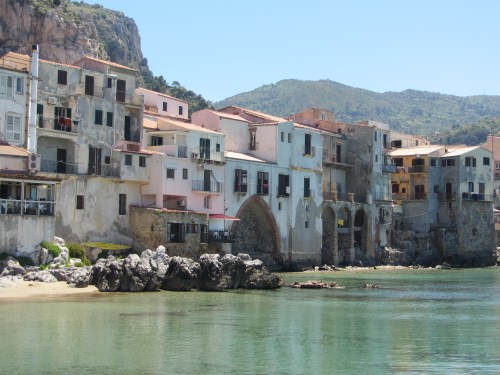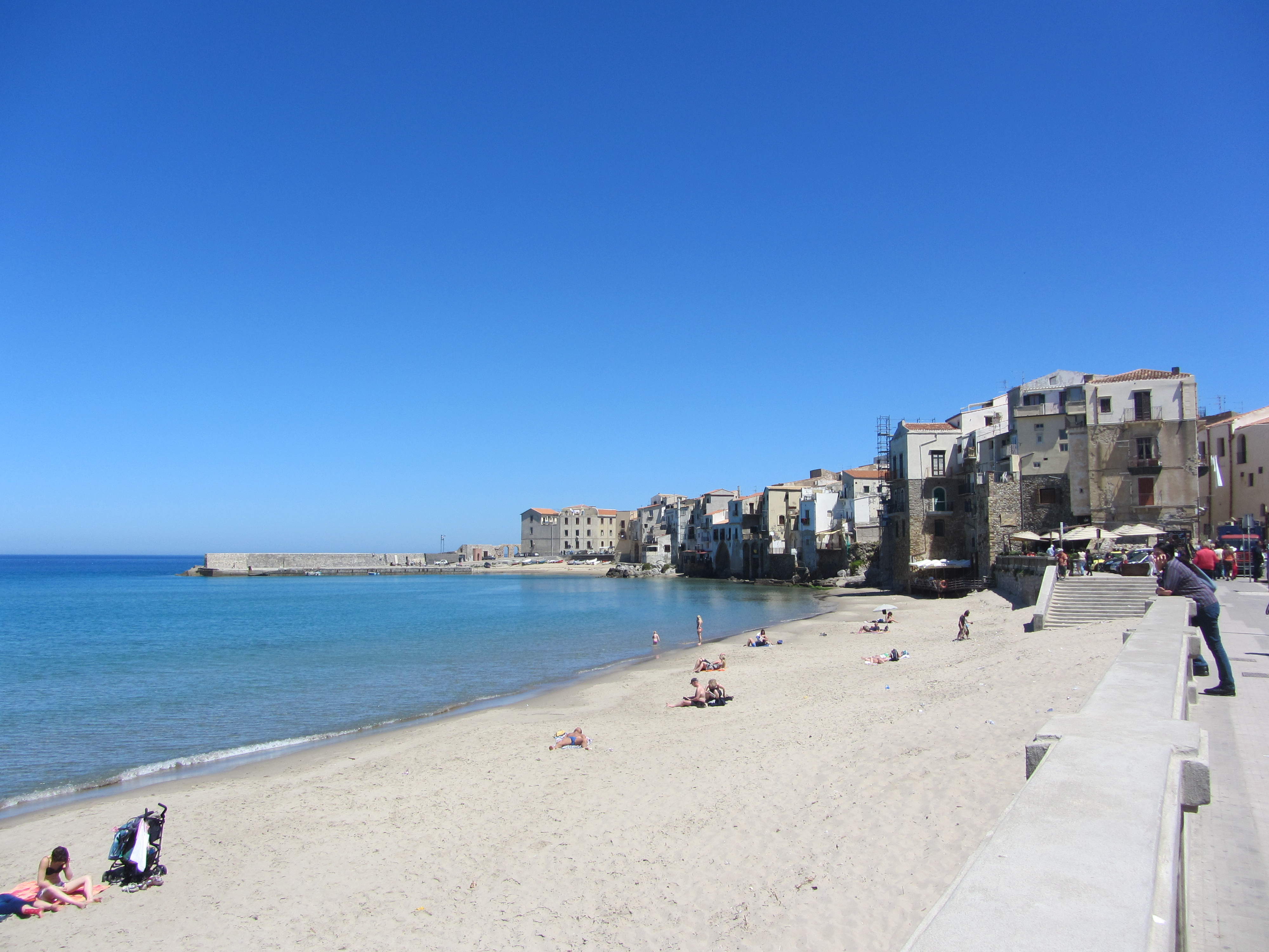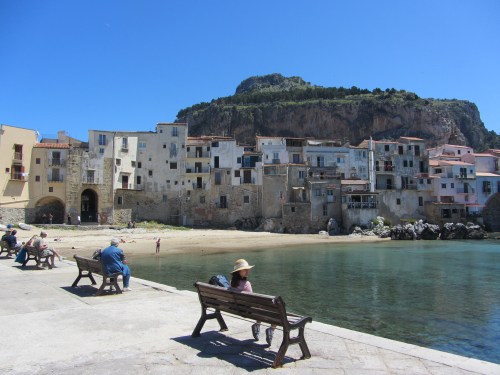 Cefalu is unlike any other fishermen’s village I’ve ever seen, with its rocky promontory, the cathedral on a hill, and the shallow, crystalline waters which seem to slide right up to the centuries-old houses. The smell of the sea, however, is so welcomingly familiar as we walk lazily along the waterfront. Hats, bracelets, and trinkets glimmer on the tables where foreigners try to sell their beach-going goods.