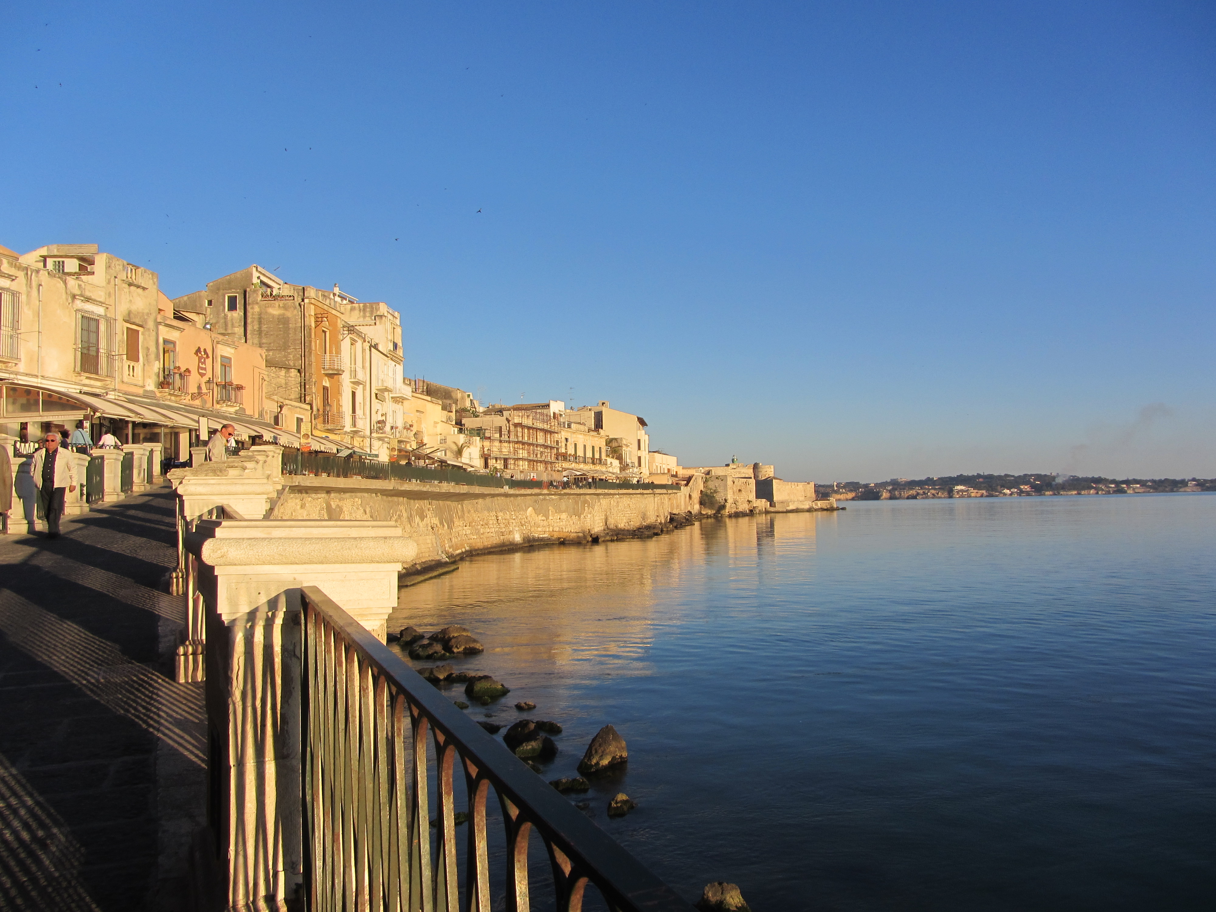 Ancient, dilapidated buildings, Greek temple ruins, zipping Vespas, fishermen selling freshly-caught sea urchins in plastic cups… Syracuse reminds me of Rome, with its slightly chaotic combination of old and modern, and the ever-present aesthetic nature of Italian cities. Stone faces of buffoons peer at us from window ledges, and the slow sunset winds it way from the horizon at the port into the empty alleyways where the buildings lean into each other, looking as if they will topple any minute.
