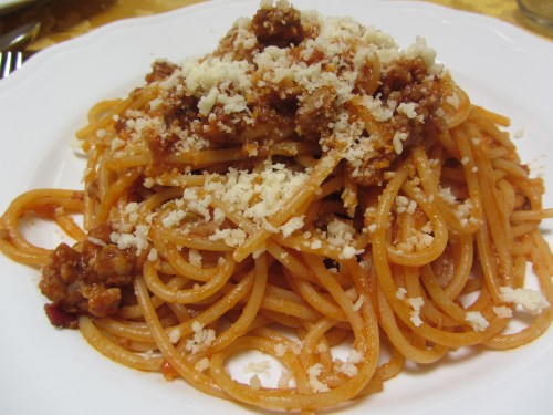 An enormous salad, “como Dios manda,” and pasta bolognesa on our way to the next city.