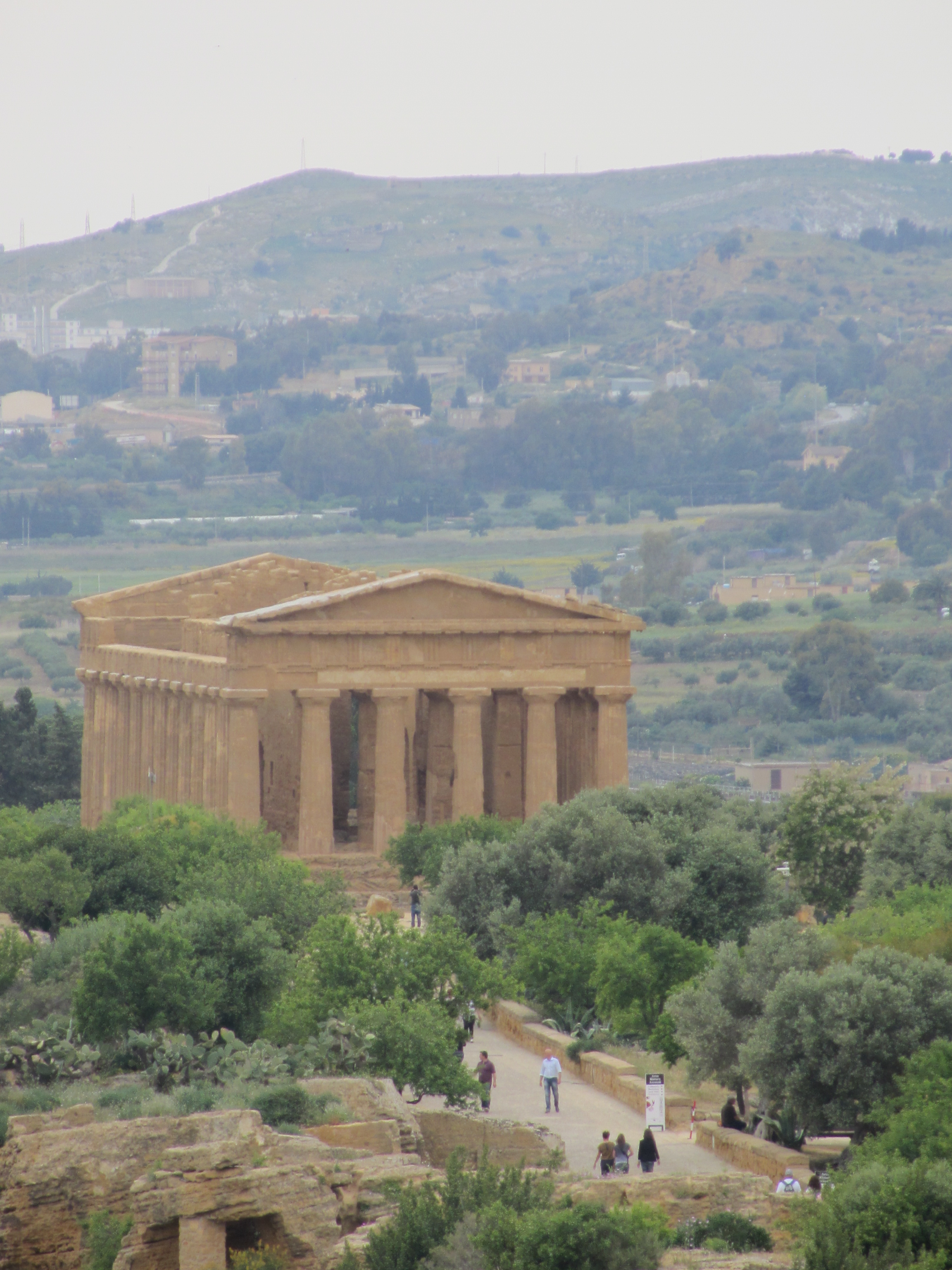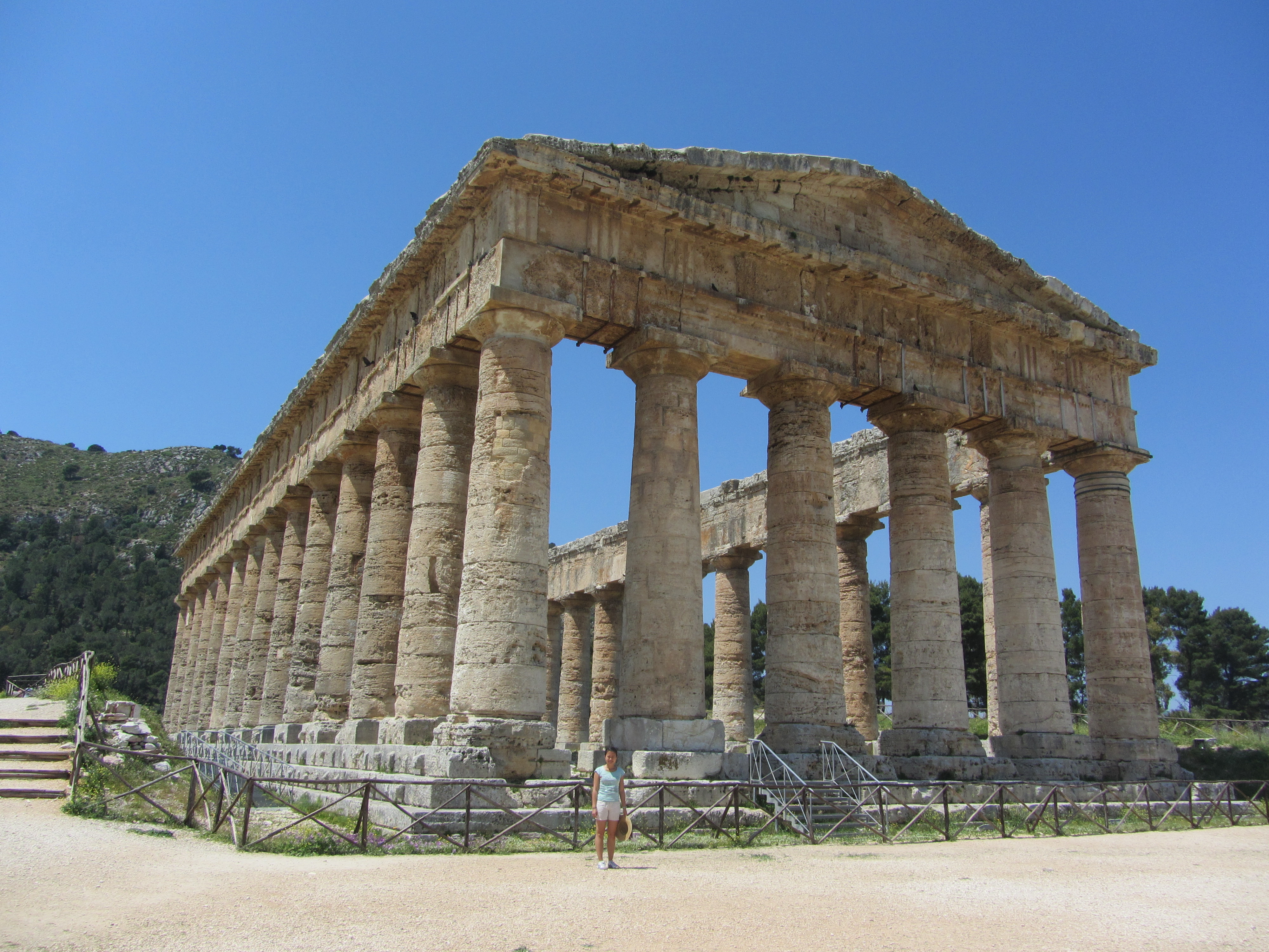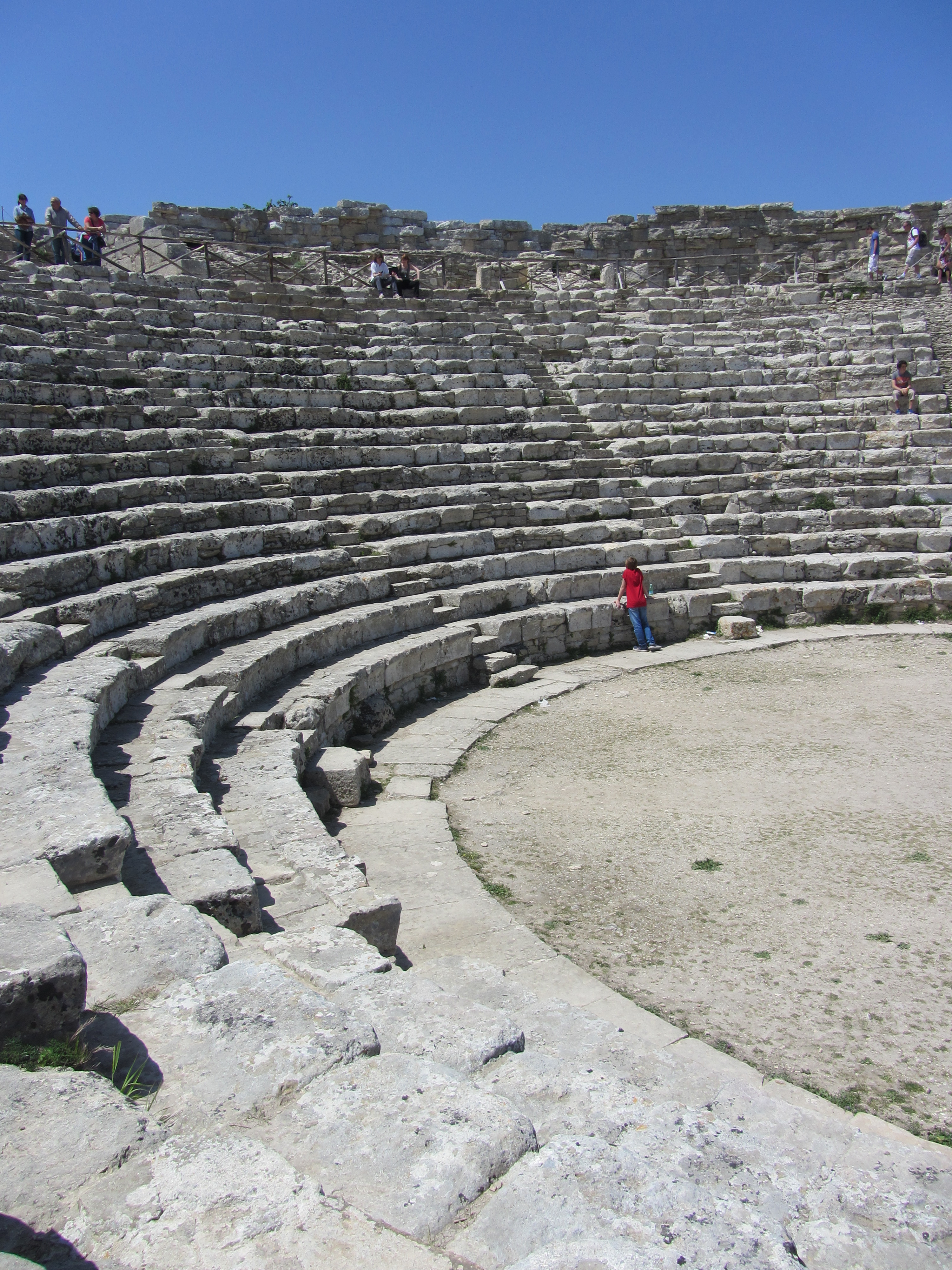 Among hilly Sicilian fields lie the best-preserved Greek temple and amphitheater in the world, possibly. Athens is no comparison. The hot stone steps of the semicircular theater overlook a sprawling, green valley.