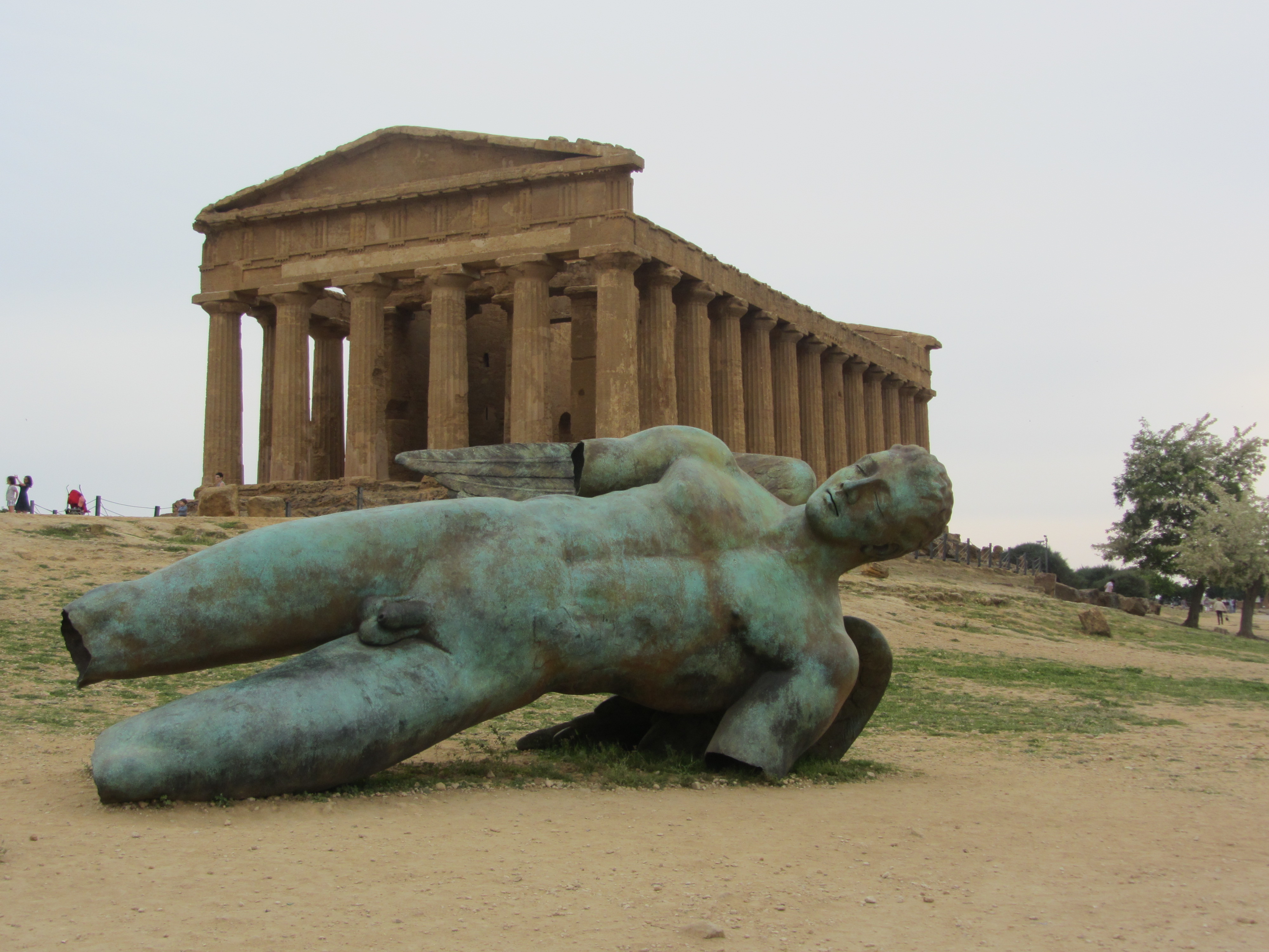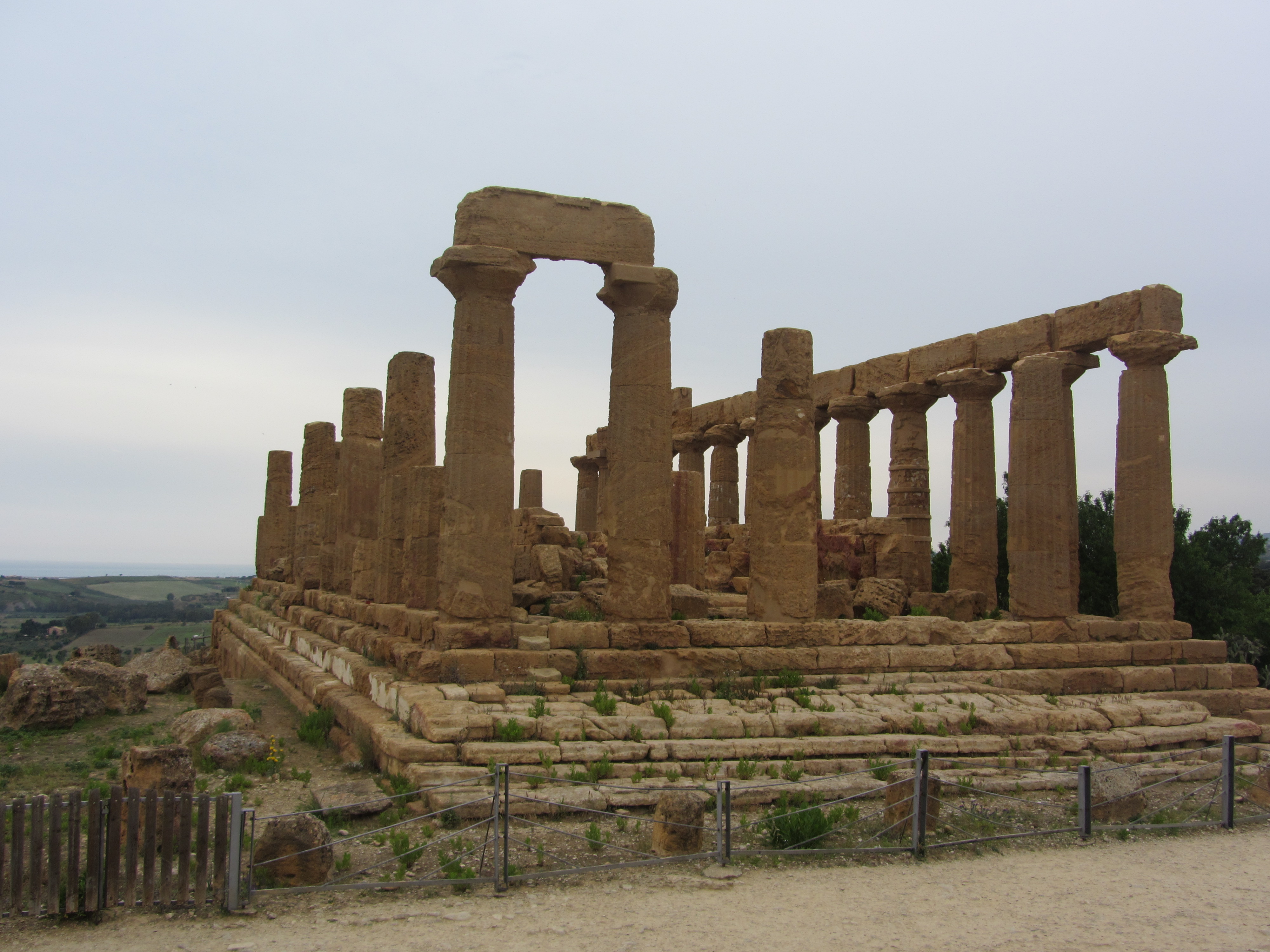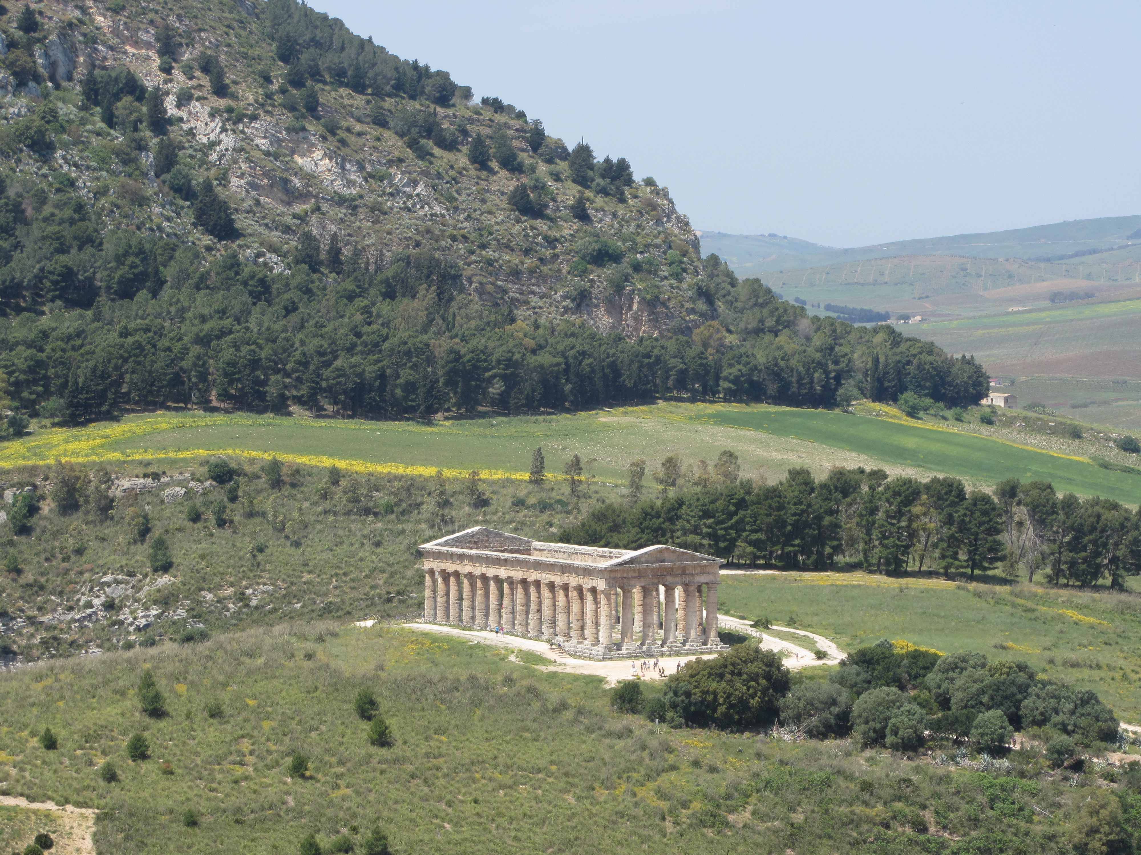 Among hilly Sicilian fields lie the best-preserved Greek temple and amphitheater in the world, possibly. Athens is no comparison. The hot stone steps of the semicircular theater overlook a sprawling, green valley.