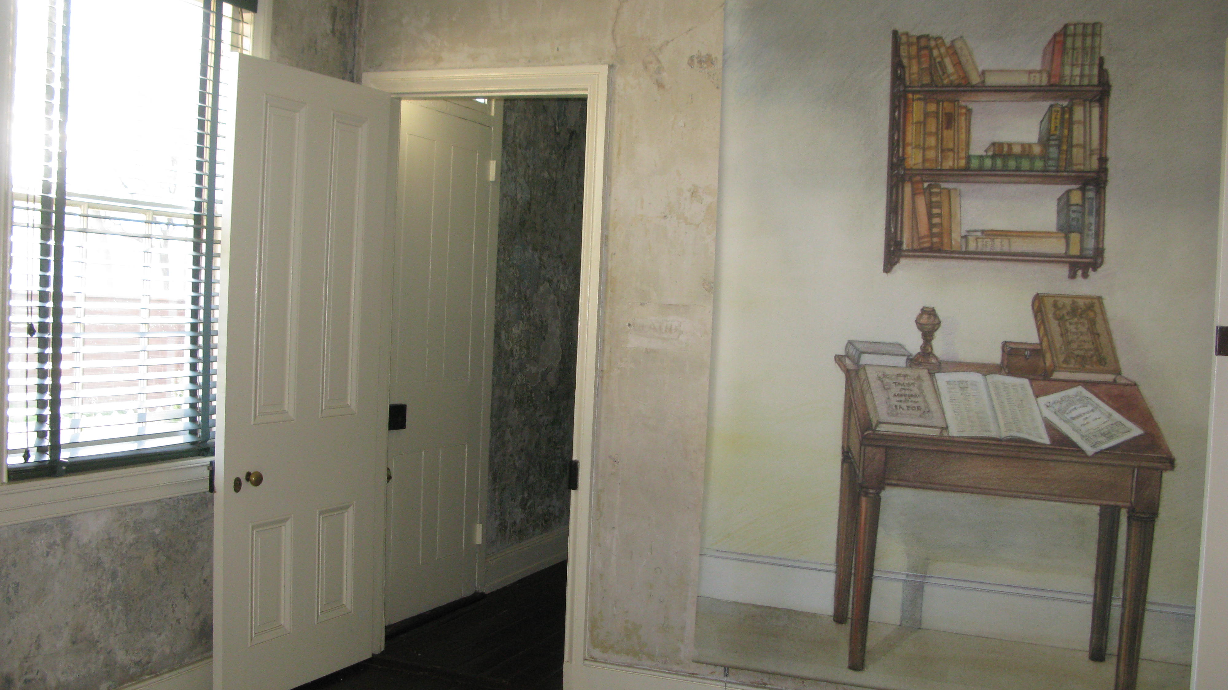 We visited his house in Philadelphia one warm autumn afternoon, after not having been there in ages, since we were school children on a field trip. The late sun threw the raven’s shadow onto the brick wall, and we wandered up into the house where he lived with his wife, Virginia, and her mother. Here, Poe lived in near-poverty while writing his stories and watched his wife die from tuberculosis, the same sickness of which his foster mother died. Even though he was plagued by personal demons and suffered spells of depression, the years he spent at this house were the happiest and the most productive for him as a writer. The dark cellar is remniscent of the one described in “The Black Cat.”