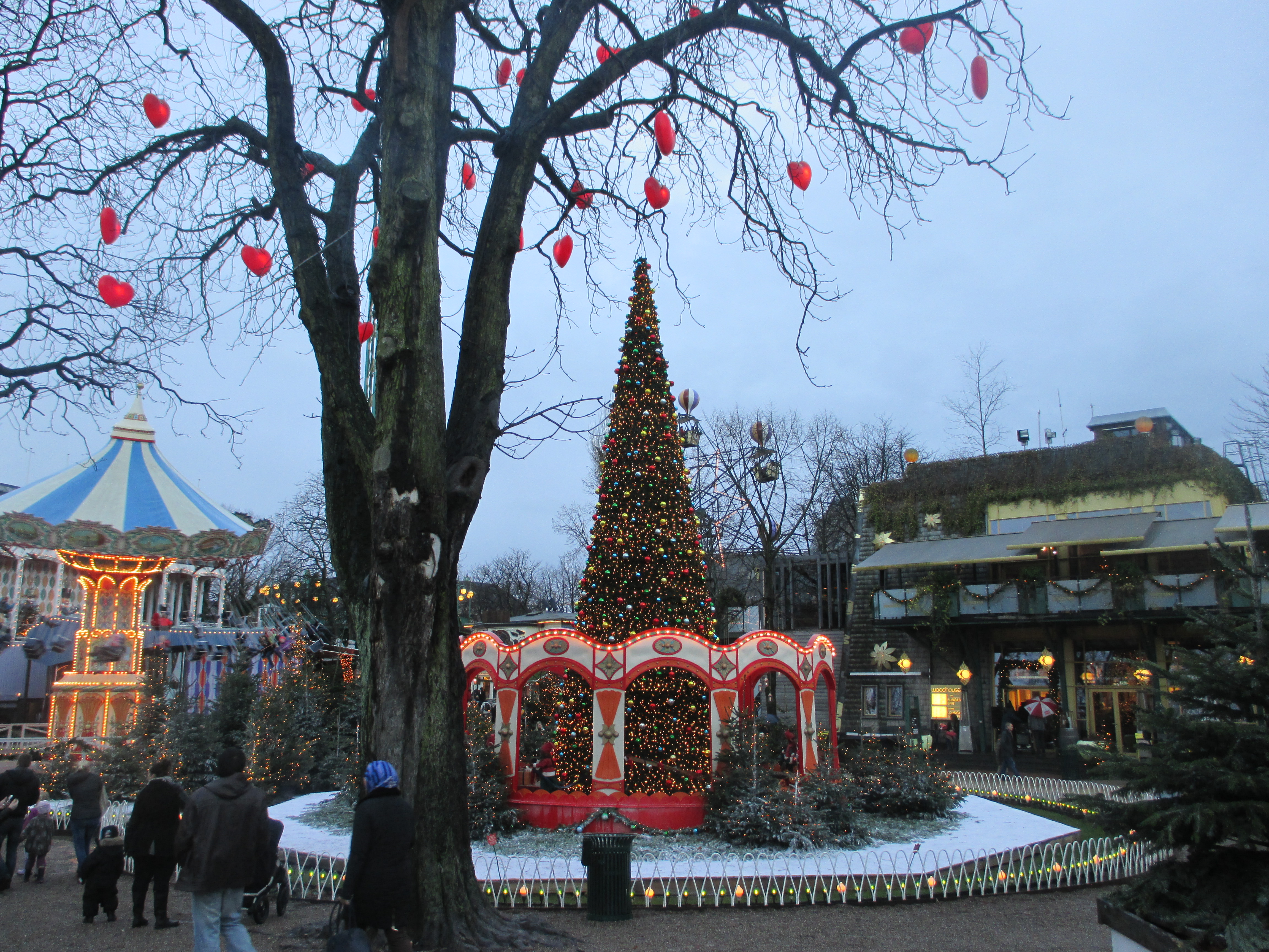 And here it was in the middle of downtown Copenhagen, the entrance looming with Christmas trees and lights, a grand euphoria for tourists with children as well as locals who want to delight in an afternoon gluhwein in a fantastical setting. Chinese temples, sultan’s palaces, swans skimming on lakes, sculpted gardens under rollercoasters — all worlds exist together at Tivoli.