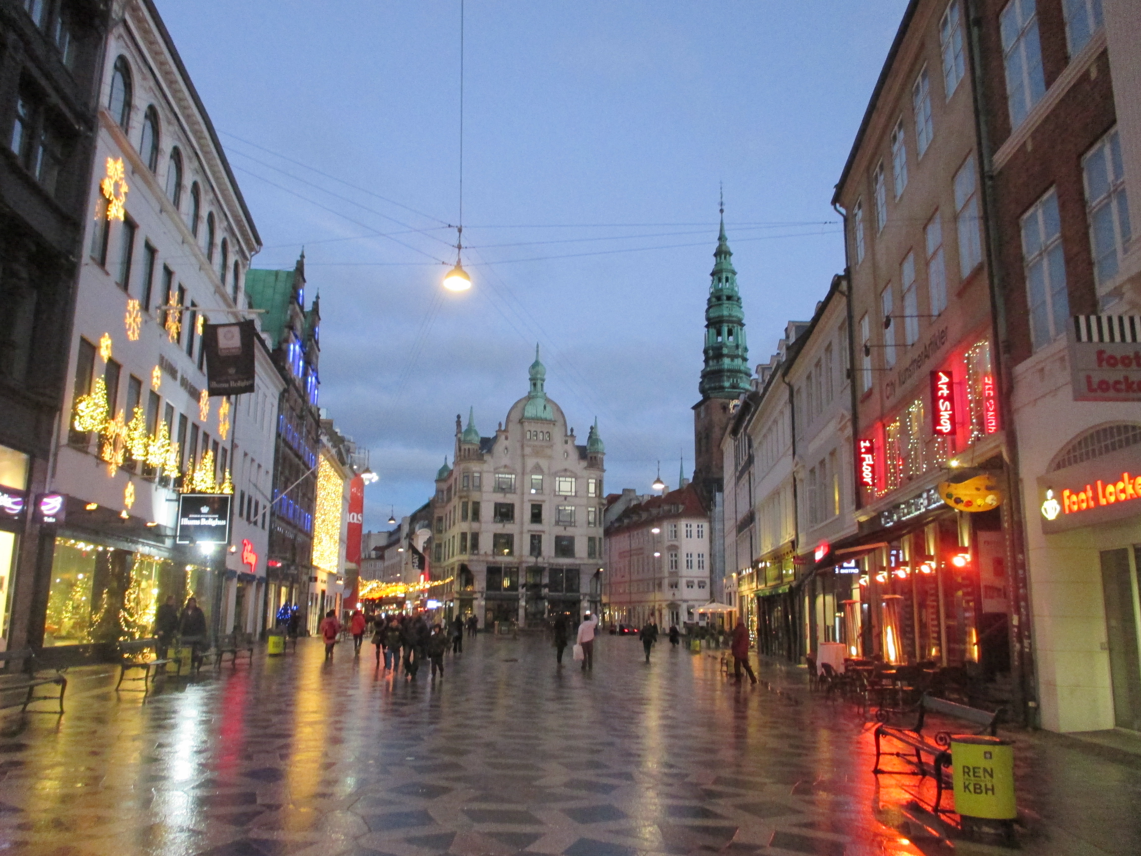 Copenhagen is gorgeous, with an Old World and small town feel, sprawling yet walkable. The Danish ride by on their multitudes of upright bicycles, wearing dark clothing and boots and carrying their shopping in baskets. There is bustle on the big avenues but not too much, and everybody seems to be holding their breath for the arrival of Christmas.
